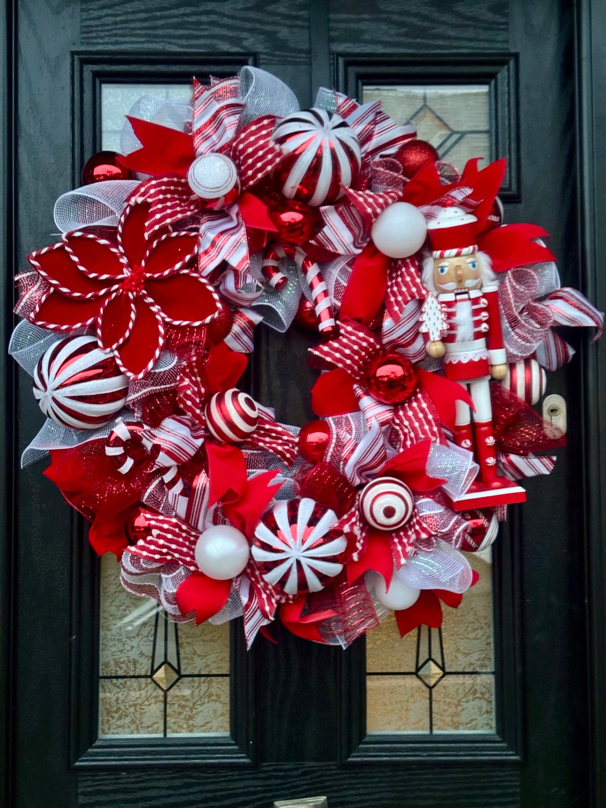 Beautifully handcrafted red and white Candy cane Nutcracker Wreath approx 65/70cm