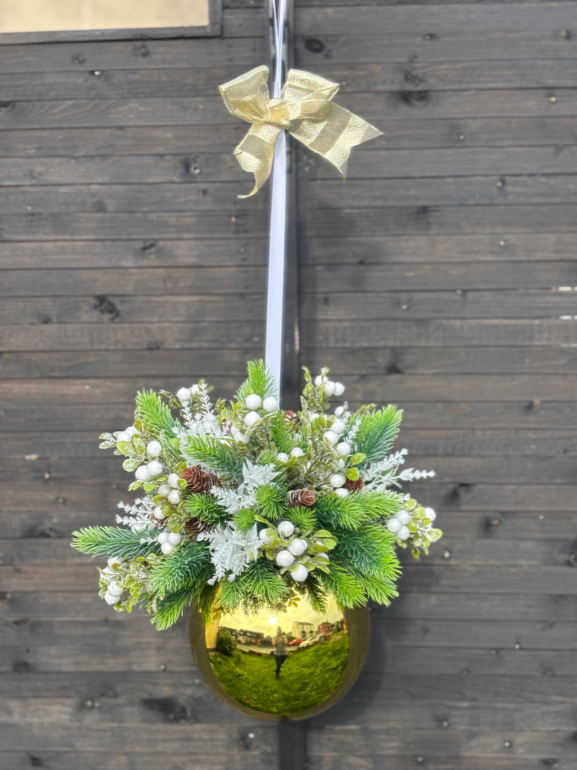 - Glitter Bauble with Mixture of Pine foliage , A beautiful mixture of White & Green berries and winter foliage