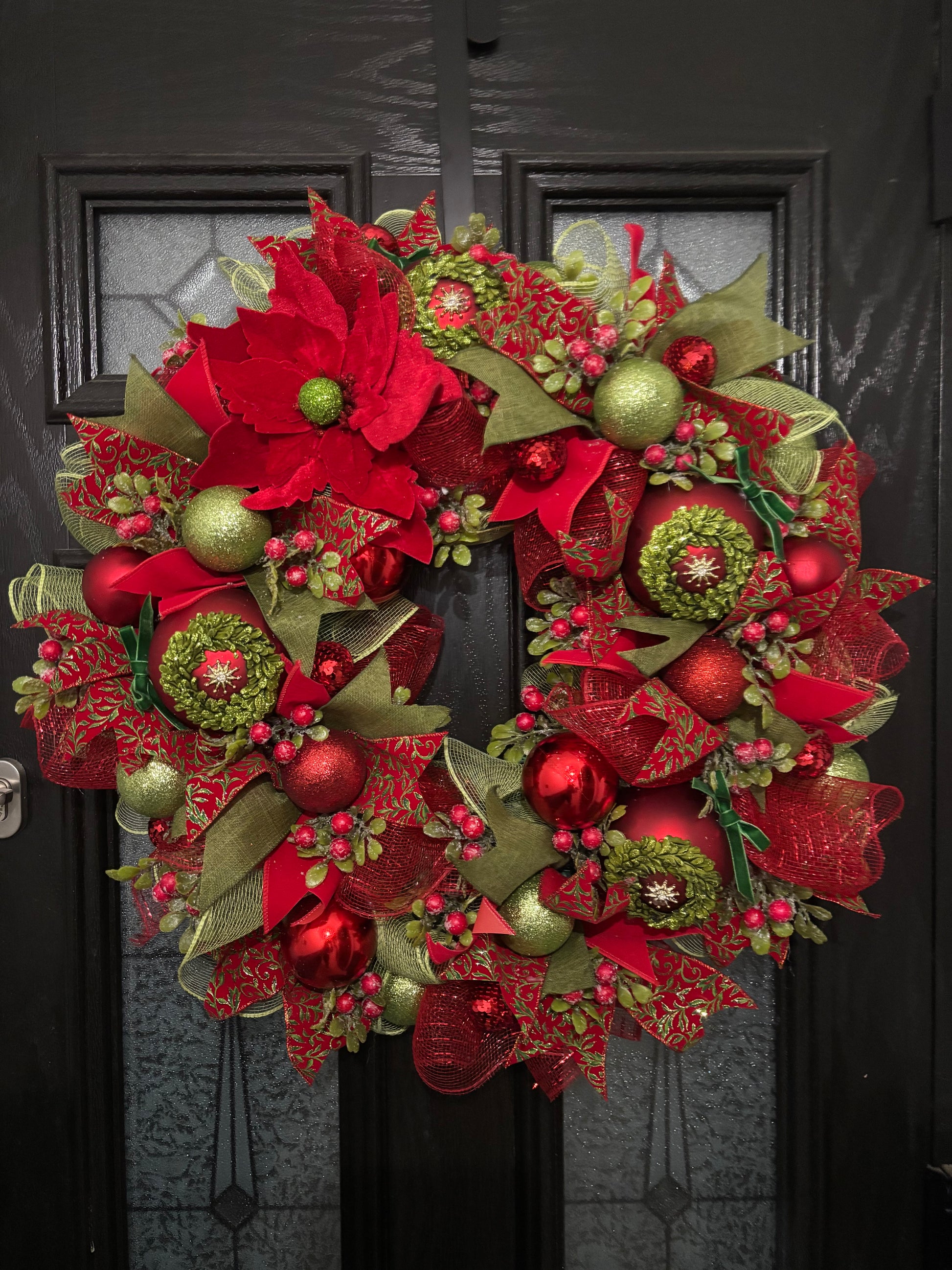 - Mixture of of Decomesh, Decorative baubles, Poinsettias, Ribbon's and Berries